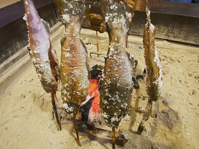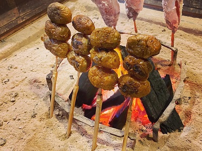 ■水窪名産『じゃがた』の串焼き! 1本250円 ※4本よりご注文いただけます(要予約) 水窪じゃがたは小粒で味が引き締まったじゃがいもです。 串にさしてほつむら特製味噌を付け、炭火で焼きます。 ほくほくで香ばしいじゃがたの串焼きをお楽しみください。 ■山女魚(やまめ)の塩焼き! 1匹500円 ※2匹よりご注文いただけます(要予約) 外は香ばしく、中の身はふわふわ… しっかり焼けば、頭から丸ごといただけます! ※季節により取り扱いが異なります。ご希望の際はお気軽にお問い合わせください。 |